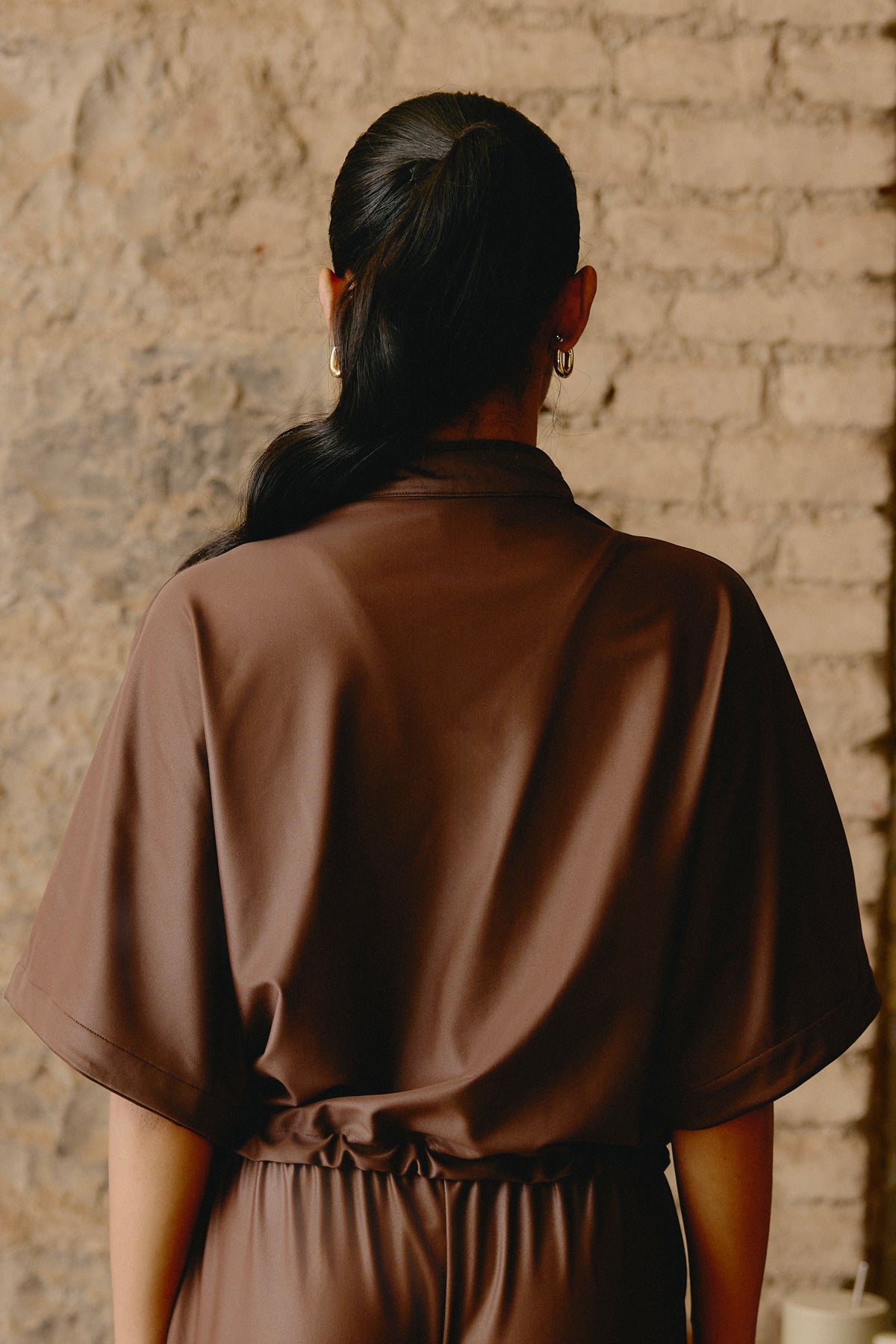Tie-Up Stretch Shirt in Caramel